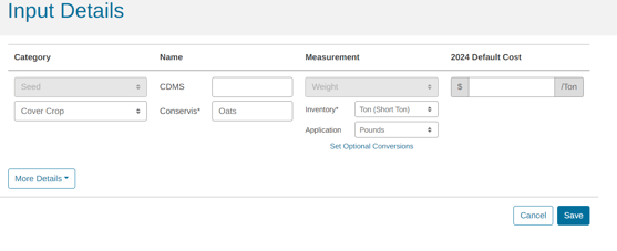 You have two options to setup cover crop tracking in Conservis, based on whether the cover crop generates revenue: