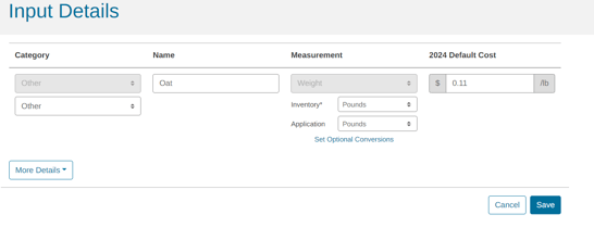 Now you can add the seed for this crop as an input and track this crop separately from other crops.