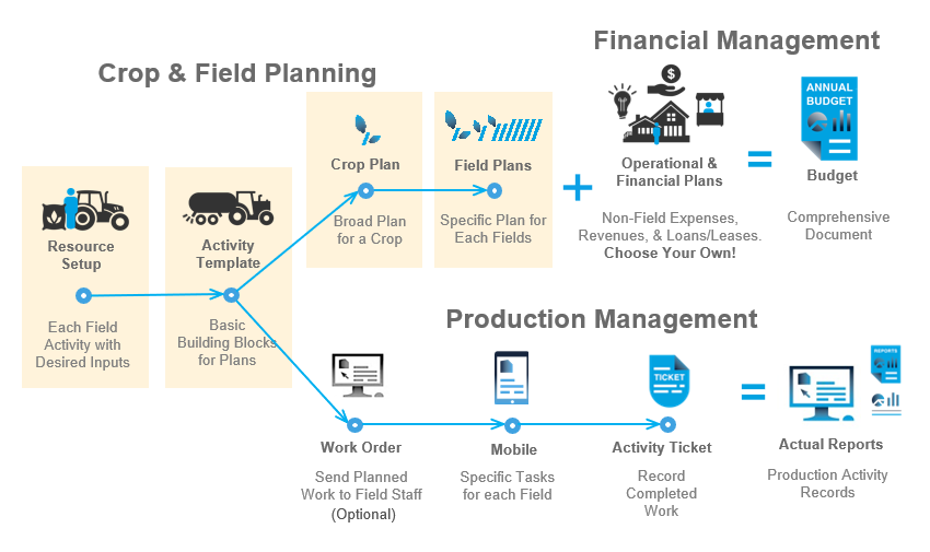 Create plans for all your field activities, crops, and fields that you can use for assigning work, generating budgets, and at the end of the season compare your plans to actuals.