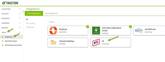 Once the system has created your connection with FS, you will see a check mark next to the FS integration option.