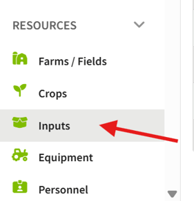 1. To edit the opening balance on your input, navigate to Resources and then click on Inputs.