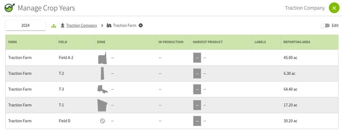 The Crop Zone(s) with In Production enabled will have all data from your John Deere Operations Center or Climate FieldView integrations applied to it. If multiple Crop Zones are marked as In Production for the same field, duplicate records will appear in your Import Queue.