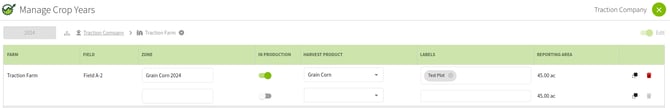 Repeat the assignment process by adding another Harvest Product and updating any details. For any Harvest Product not in production, you will want to toggle off the In Production status.