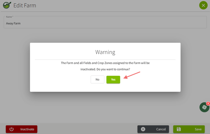 If you wish to re-activate an inactivated Grower, Farm or Field, follow the same steps as listed above and select Activate. If you have any questions navigating these steps please reach out to our Customer Success Team at 888-466-6080.