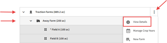 7. To Inactivate a Grower or Farm, Click on the three dots for the Grower or Farm, then select View Details