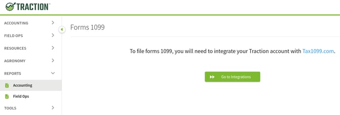 When you create your Tax1099.com account, be sure to use the e-mail for your Traction Ag owner account. If you are unsure what e-mail you used, please contact our Success Team via live chat or 1-888-466-6080 (ext 2).
