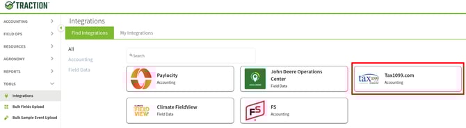 2. In the Integrations section, click the Tax1099.com button.