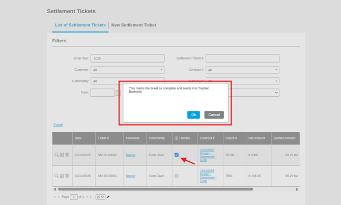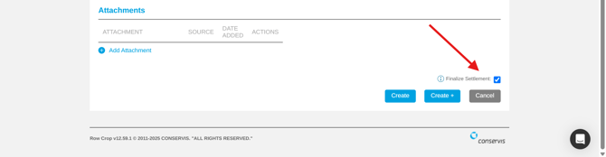 1. Within the Conservis platform there are 2 ways to finalize a settlement. The first option is to check the box at the bottom right of creating a settlement ticket as shown below. This action marks the settlement ticket as complete and sends the invoice to Traction Business.