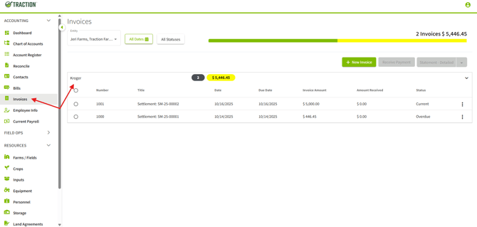 Navigate to your Traction Business account > Underneath Accounting, click on Invoices. You will now see your invoices from your finalized Conservis Settlements.