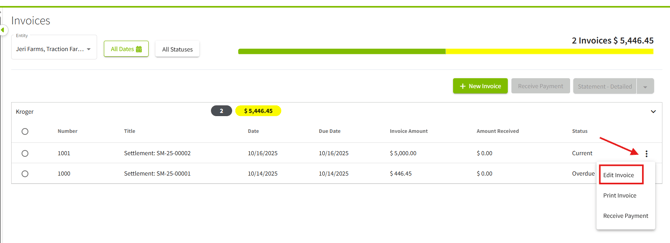 If you wish to view, edit, or add any additional details to the Invoice > click the three dots to the right and click on edit.