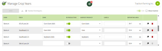 This article explains how to use Crop Zones, a feature for assigning harvest products to fields for a particular year. This step is necessary to complete prior to recording field records or allocating costs to fields.