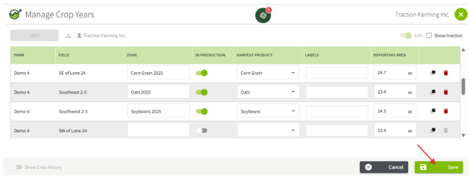 2. Confirm the Year is correct and assign the proper Harvest Product to each field.