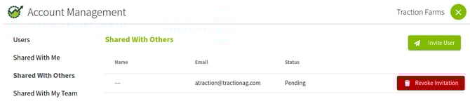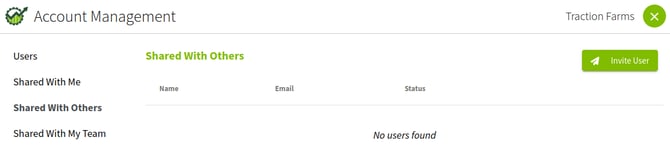 2. Navigate to Shared With Others. Here you can invite an existing Traction User by clicking on the Invite User button