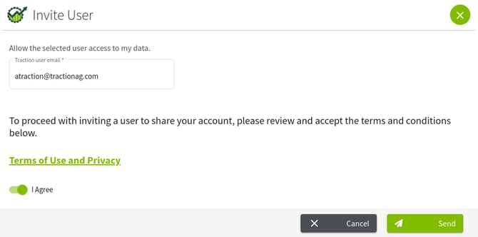 Enter the user's email, agree to the Terms of Use and Privacy, and an invitation will be sent to them.
