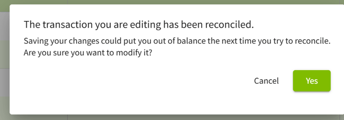You’ll see another prompt asking if you want to remove the reconciled status from the transaction.