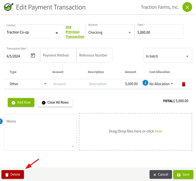 You can now proceed to open the transaction and select Void/Delete in the bottom-left corner.