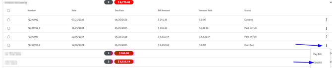 6. Now you will navigate back to the Bills Section, find the desired contact and expand the list to view the Bills.
