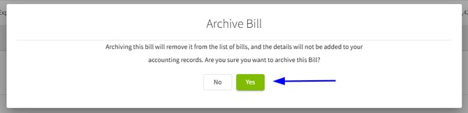 3. Confirm by clicking Yes that you want to Archive this Bill and remove it from your accounting records.