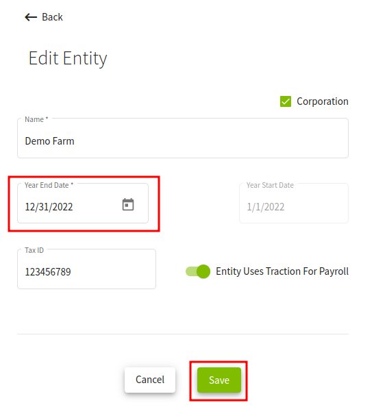 2. Updating Entity Start and End Date to Show Previous Year's Transactions