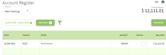 1. Click on the Dashboard icon at the top right corner of your screen and select Accounting. Click on the Account Register tab at the left of your screen. Next, click on the Add New button and select Add New Payment.