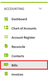 1. Using the navigation menu on the left of your screen, open the Accounting menu and then select Bills. Click the + New Bill button.